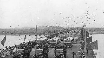 1957年10月15日,武汉长江大桥正式通车。该桥1955年9月动工,全长1670余米。武汉长江大桥位于武汉市汉阳龟山和武昌蛇山之间,是新中国成立后在“天堑”长江上修建的第一座大桥,也是古往今来,长江上的第一座大桥,是我国第一座复线铁路、公路两用桥,建成之后,成为连接我国南北的大动脉,对促进南北经济的发展起到了重要的作用。