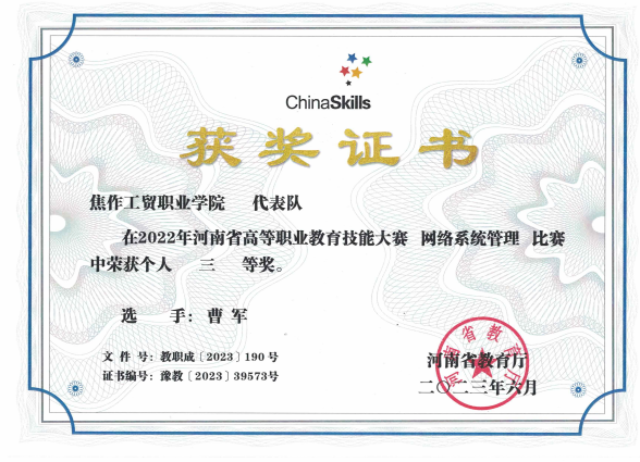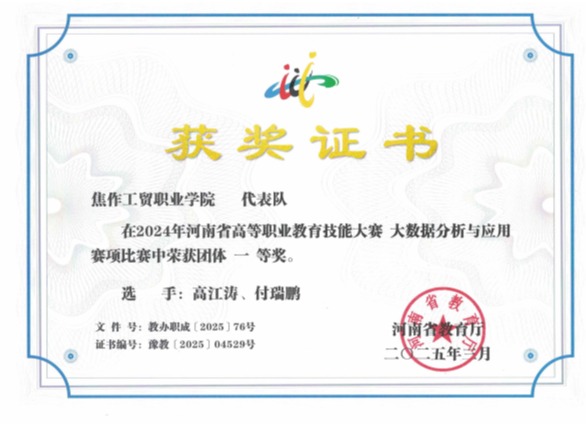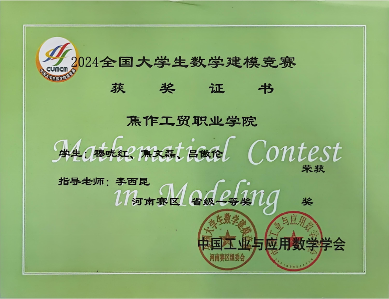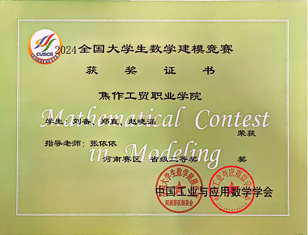 近年来,本专业在各类学科竞赛与专业评比中成绩斐然,斩获了多项重量级荣誉。其中包括国家级竞赛一等奖、二等奖各若干项,省级竞赛一等奖、二等奖及三等奖若干项。具体而言,在河南省高职院校技能大赛、全国数学建模大赛等具有广泛影响力的赛事中,均留下了本专业学子摘金夺银、载誉而归的闪耀足迹。