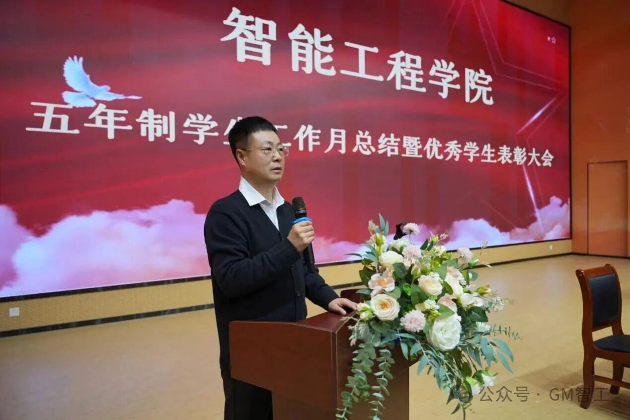 最后,赵科宁副校长在智能工程学院表彰会上,肯定学院成绩,表达祝贺与感谢,谈会议感触并提出三点建议,期望学生进步成长。