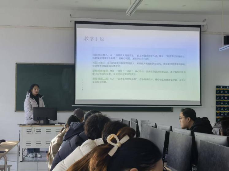 分享会上,两位优秀代表教师先后登台,结合自身教学实例展开交流。在专业课程教学方面,黄佳佳老师以《电工电子技术》为例,分享了“理论+仿真+实操”三位一体的教学模式,将抽象的电路结构知识转化为可感知的操作场景,有效提升了学生的学习主动性和实践应用能力;