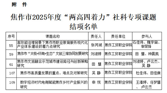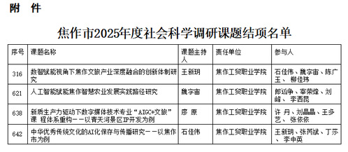 此次多项教师主持课题的成功结项,是学院教师深耕区域发展需求、开展应用性科研的集中体现。参与课题的教师们将专业学识与地方实际紧密结合,不仅锤炼了自身的科研应用能力,更产出了一批贴合焦作产业升级、文化传承、乡村振兴需求的优质成果,为区域高质量发展注入了智力动能,后续相关成果有望进一步转化为推动地方发展的实际效能。
