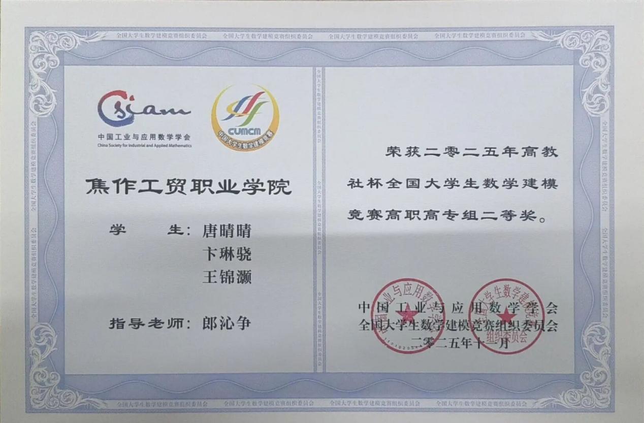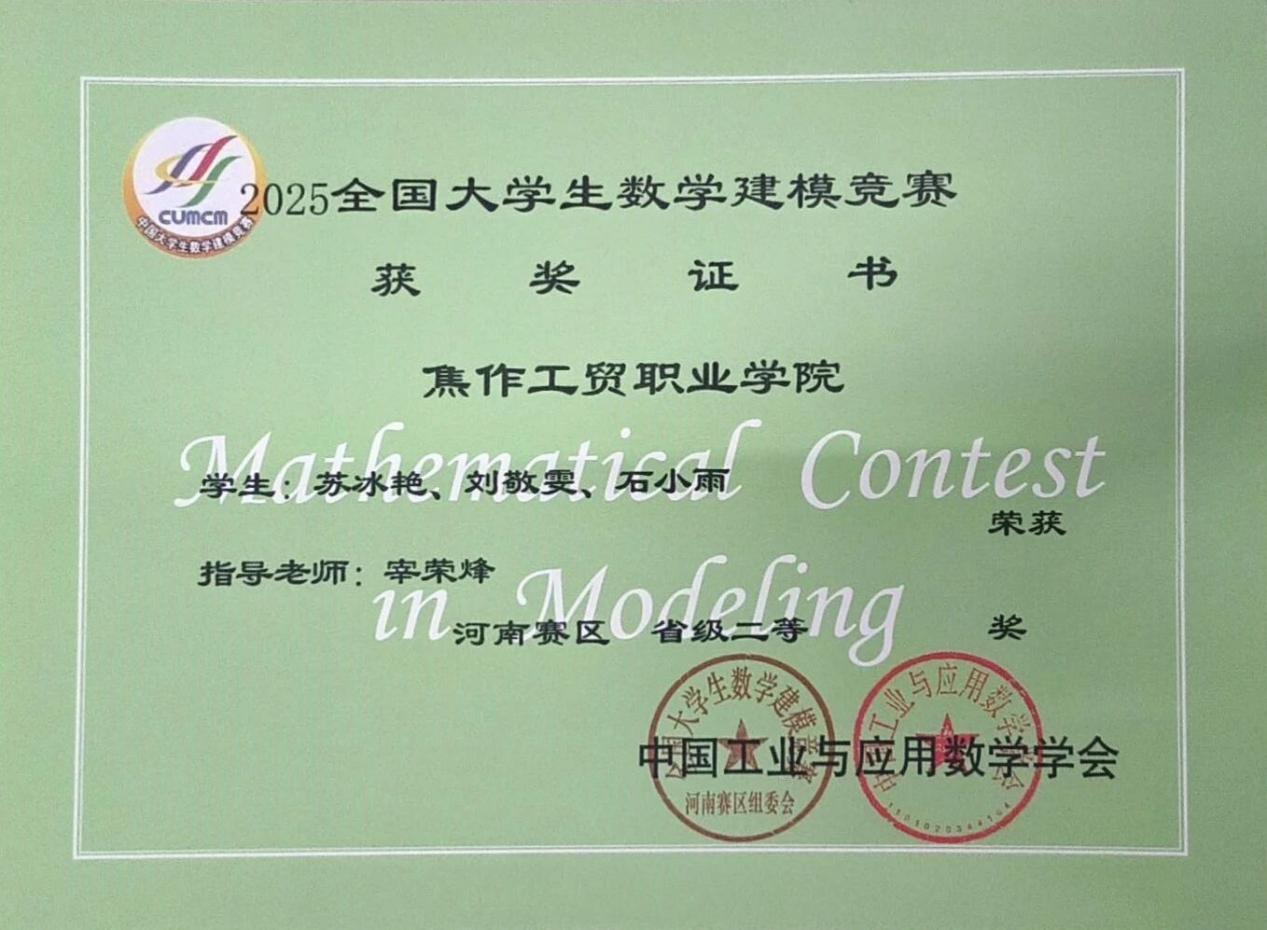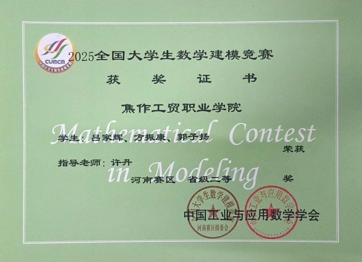 2025年“高教社”杯全国大学生数学建模竞赛近日公布获奖成绩单,我校智能工程学院学子凭借扎实的专业功底、出色的创新能力和默契的团队协作,在全国数万支参赛队伍中脱颖而出,斩获全国二等奖2项、河南省二等奖2项、河南省三等奖1项,用亮眼成绩为学校人才培养成果再添浓墨重彩一笔。