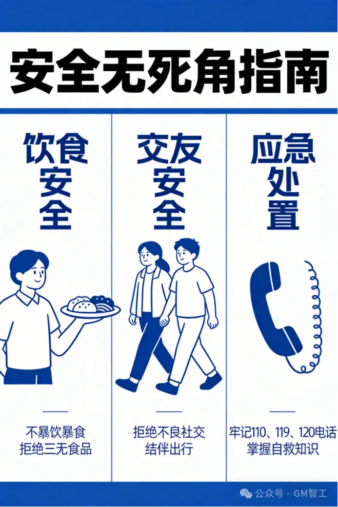 除上述重点安全事项外,还要关注饮食、交友、应急处置等方面,全方位守护假期安全。
