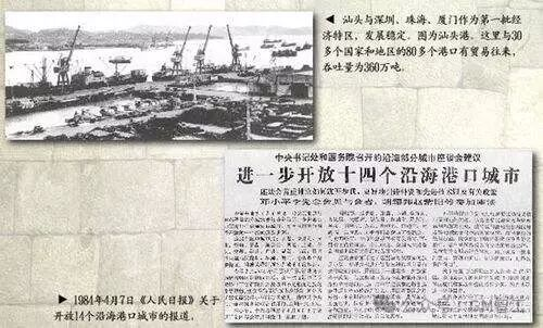 1984年3月26日至4月6日,中共中央书记处和国务院在北京召开沿海部分城市座谈会。根据邓小平2月24日关于对外开放和特区工作的重要谈话,会议建议进一步开放由北至南14个沿海港口城市:大连、秦皇岛、天津、烟台、青岛、连云港、南通、上海、宁波、温州、福州、广州、湛江、北海,作为我国实行对外开放的一个新的重要步骤。5月4日,中共中央、国务院转发《沿海部分城市座谈会纪要》,并发出通知指出:沿海开放城市的建设,主要靠政策,一是给前来投资和提供先进技术的外商以优惠待遇;二是扩大这些城市的自主权,让他们有充分的活力去开展对外经济活动。