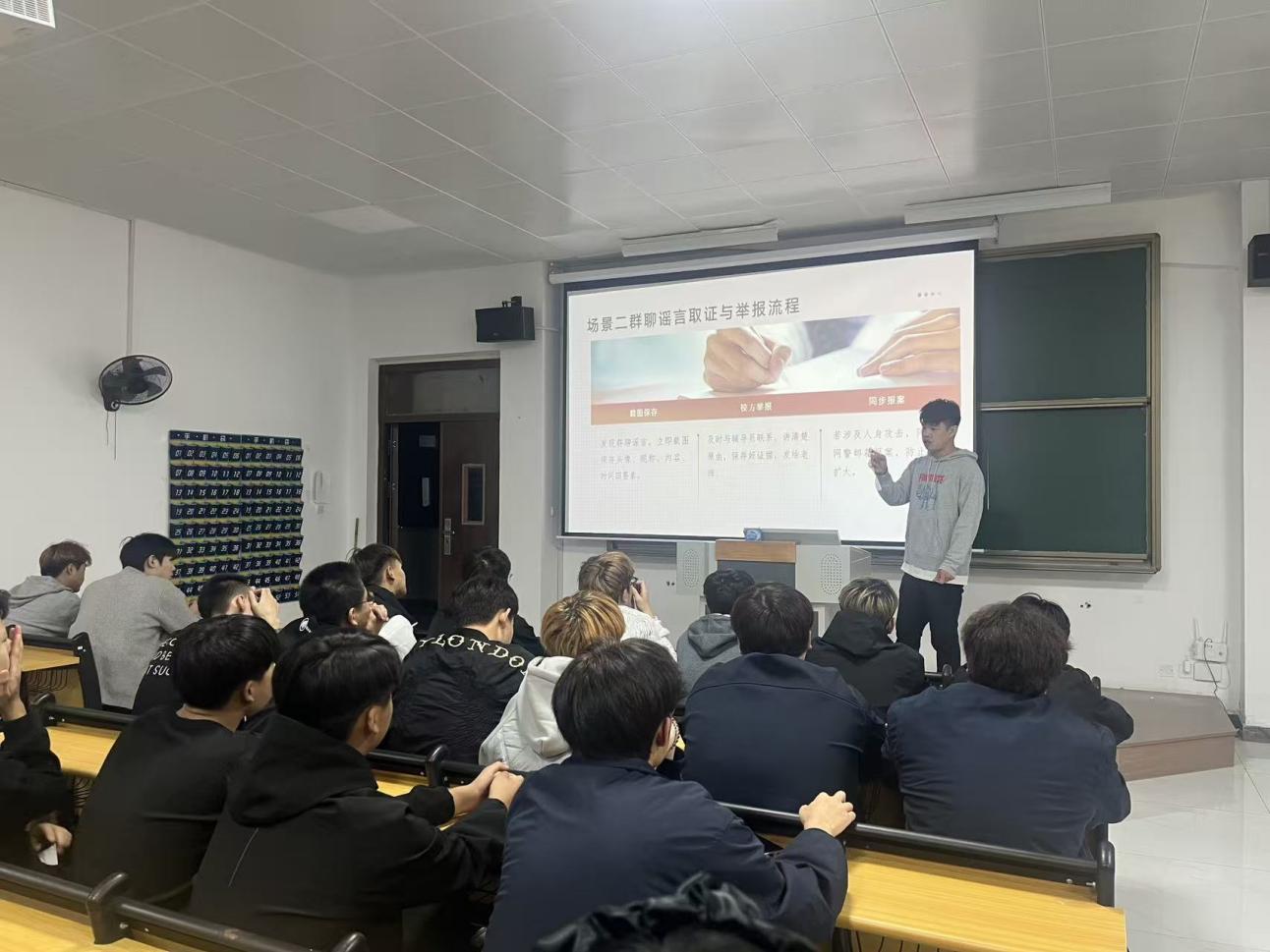 同时,辅导员还就如何提高自我保护能力、正确应对校园内外的安全风险等问题,向同学们提出了具体的建议和要求,引导同学们学会运用法律武器维护自身合法权益,自觉抵制不良行为,做一名有法治观念、有道德修养的新时代中职生。