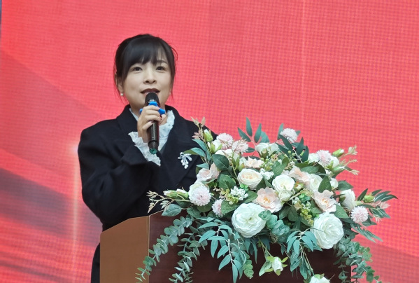 大会第三项,杨甜甜副院长宣读优秀学生获奖名单,奖项分别为“勤学之星”、“文明之星”、“责任之星”、“自律之星”、“奉献之星”及“优秀教官”,共计80名优秀学生,她向获奖学生表示热烈的祝贺。