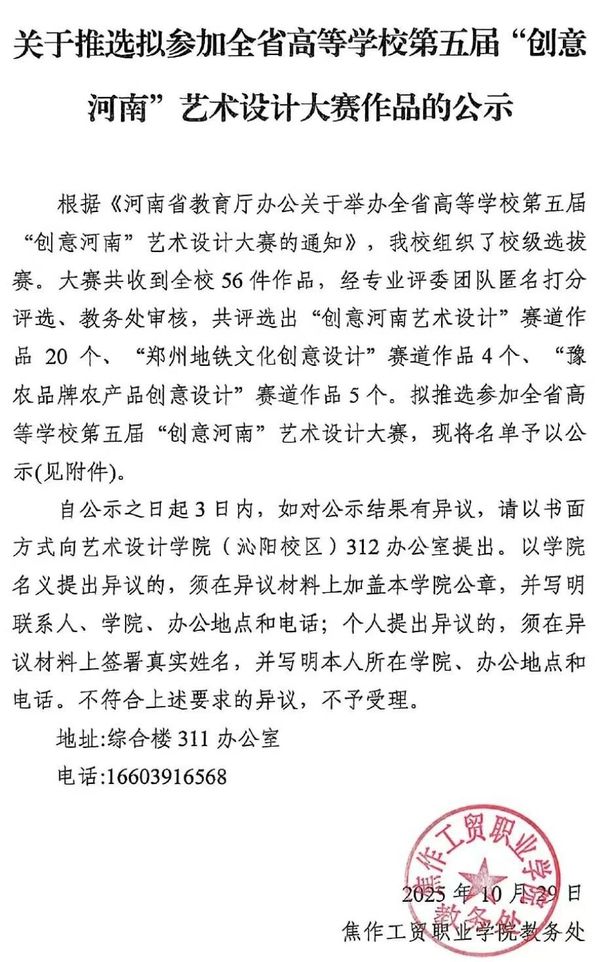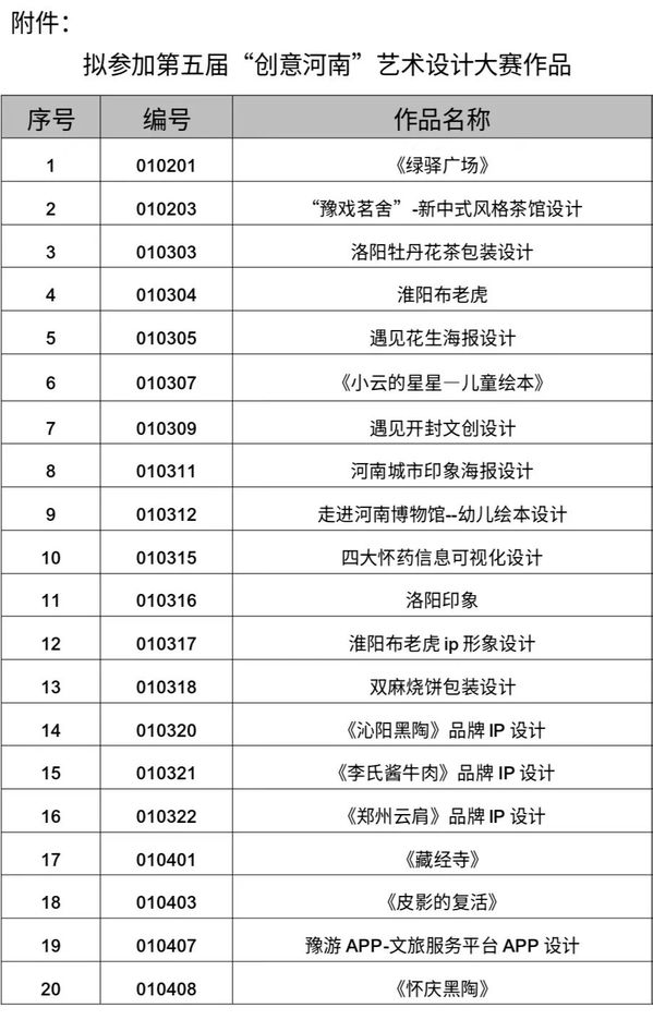 关于推选拟参加全省第五届“创意河南”艺术设计大赛作品的公示