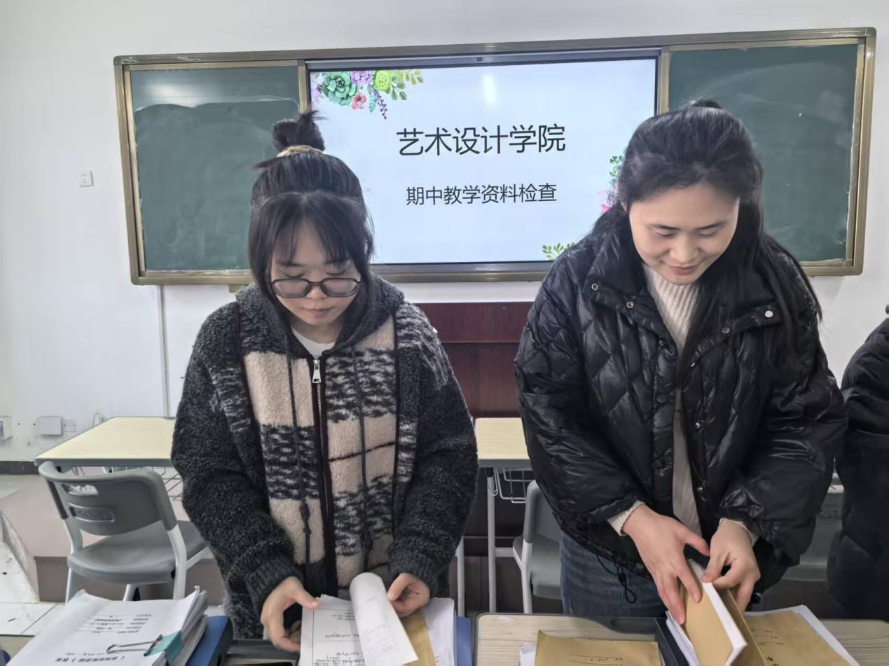 20251111日下午3点,数字媒体技术教研室8302教室组织期中教学资料专项检查,数媒教研室主任郑一璇视传教研室主任张文琦带领全体教师共同参与。