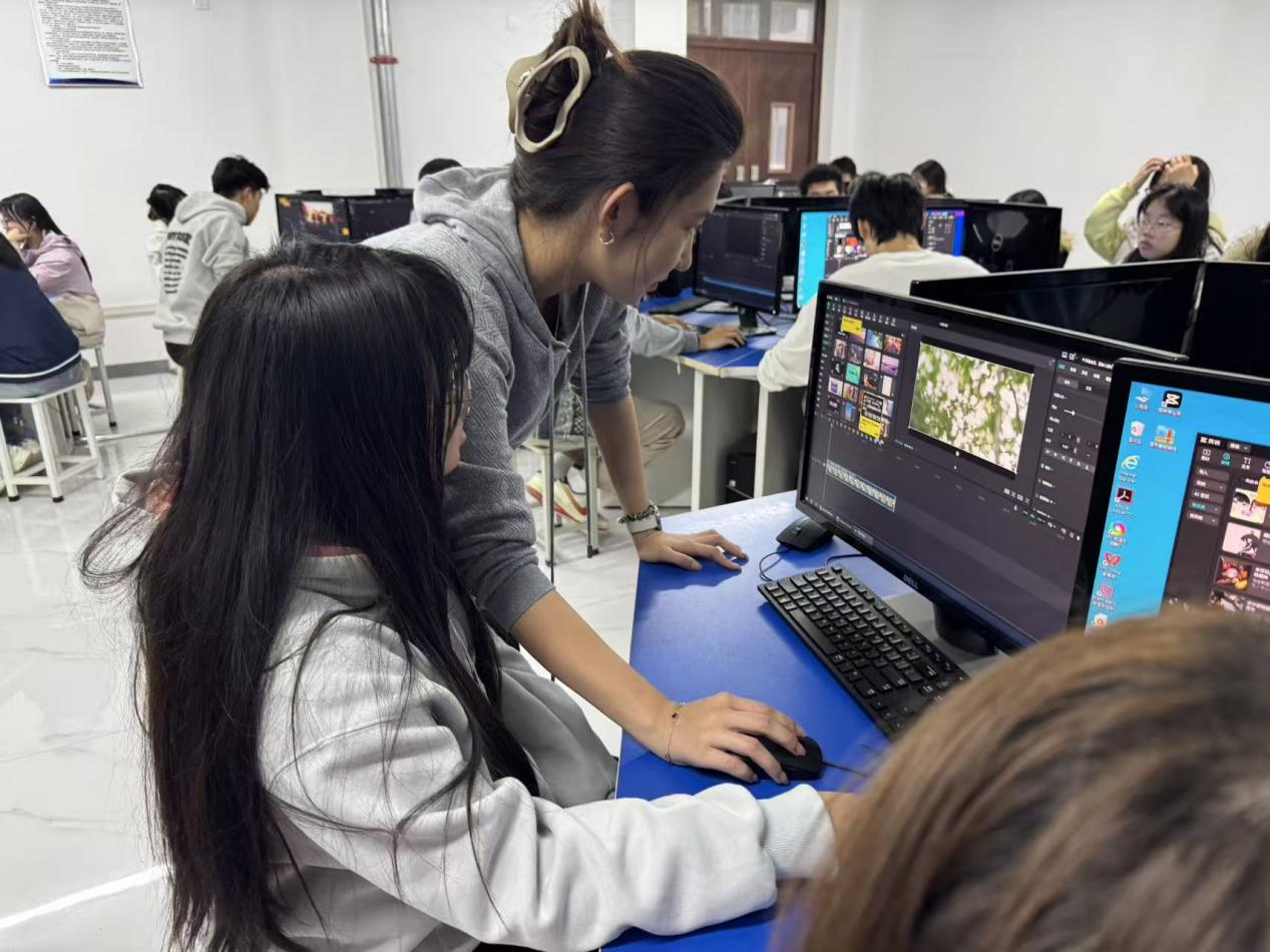 课堂上,刘芮彤老师从剪映软件界面操作入门,逐步讲解视频导入、轨道编辑、基础剪辑等核心流程。重点围绕圆形蒙版工具,拆解参数设置、蒙版移动、羽化调节等关键操作步骤,并结合 “镜头转场”“焦点突出” 两个实战案例,现场演示如何利用圆形蒙版实现画面切换的流畅感与主体突出的视觉效果。通过 “理论讲解 + 实时实操 + 一对一指导” 的方式,帮助学生快速掌握剪映核心功能,解锁蒙版工具的创意用法,为短视频创作、课程作业剪辑等实际应用提供了有力支撑。