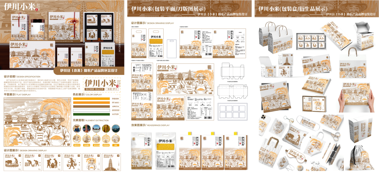 每一件获奖作品的背后,都是一次传统文化与现代创意的深度碰撞。为破解“中原文明如何被当代年轻人喜爱与传播”的课题,创作者们深入挖掘河南文化内核,从温县四大怀药的草本肌理中提取自然灵感,从伊川小米的金黄光泽中捕捉乡土温情,从开封古城的青砖黛瓦中探寻历史印记,从豫剧的婉转韵律与鲜明色彩中汲取艺术养分。