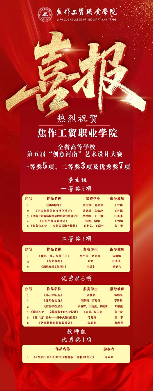 5项一等奖入账!我校在第五届 “创意河南” 艺术设计大赛再获佳绩